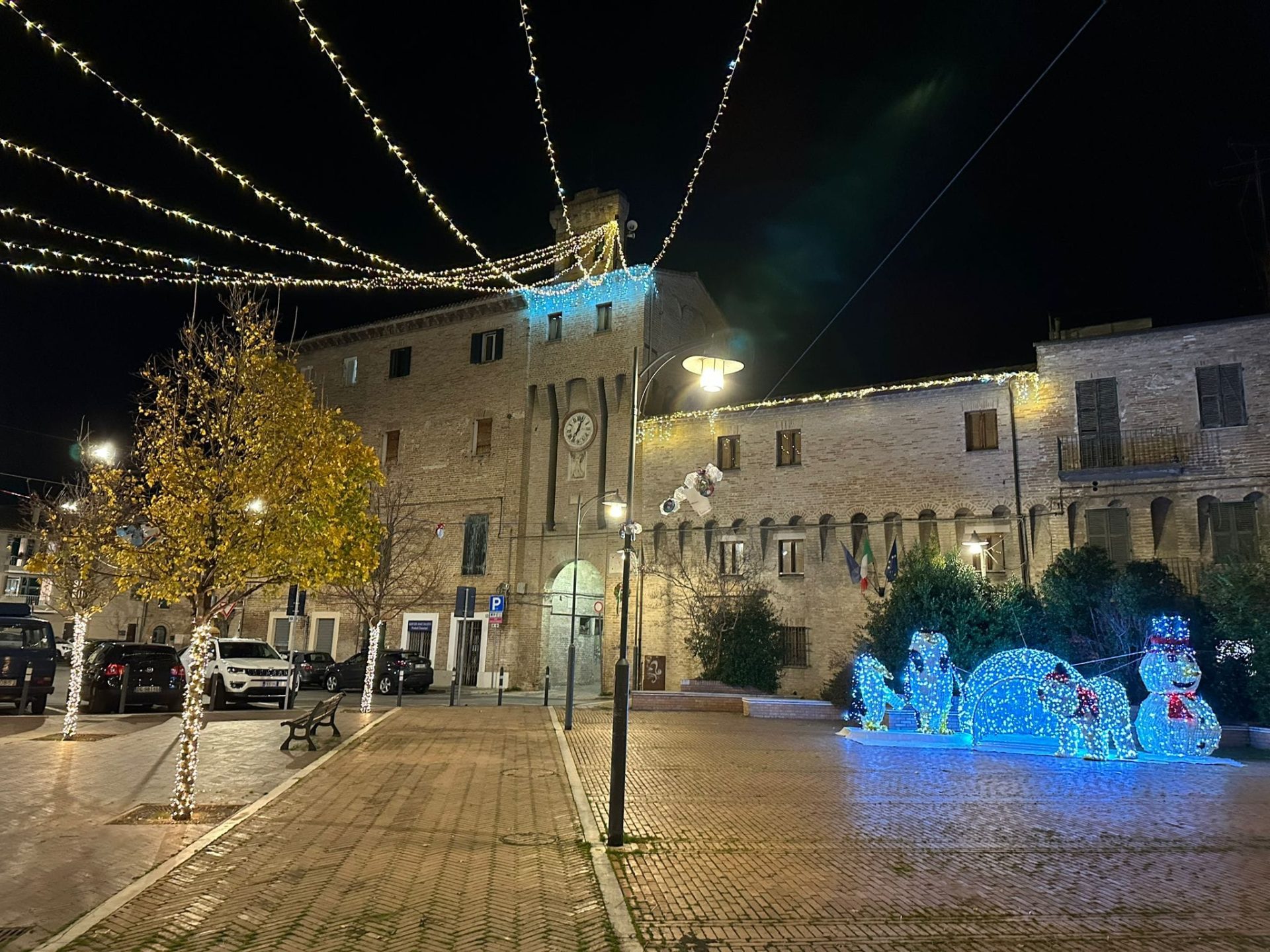 La festa inaugurale si è aperta poco dopo le 17, in piazza Mazzini, con le evoluzioni di acrobatic moon: gli acrobati sono scesi da una mezzaluna luminosa in uno spettacolo culminato con l’accensione del grande albero del centro e di tutti gli alberi disposti nei quartieri. A Castelferretti si è acceso il villaggio glaciale in piazza della Libertà. Lo spettacolo di suoni e luci in piazza Mazzini si è concluso con una pioggia di petali e coriandoli bianchi e oro. A presentare l’evento il giornalista Maurizio Socci.In contemporanea ha aperto il bosco incantato di piazza Mazzini: alberi e piante del bosco sono stati realizzati artigianalmente, nel segno dell’ecologia, recuperando in maniera artistica materiale naturale come potature di conifere e cortecce. L’impressione è quella di immergersi in un bosco vero, illuminato da grandi palline di Natale e imbiancato da neve che scende dal cielo. All’interno ci sono casette di legno, un’area per il laboratorio dei bambini e l’animazione con gli elfi di Babbo Natale.