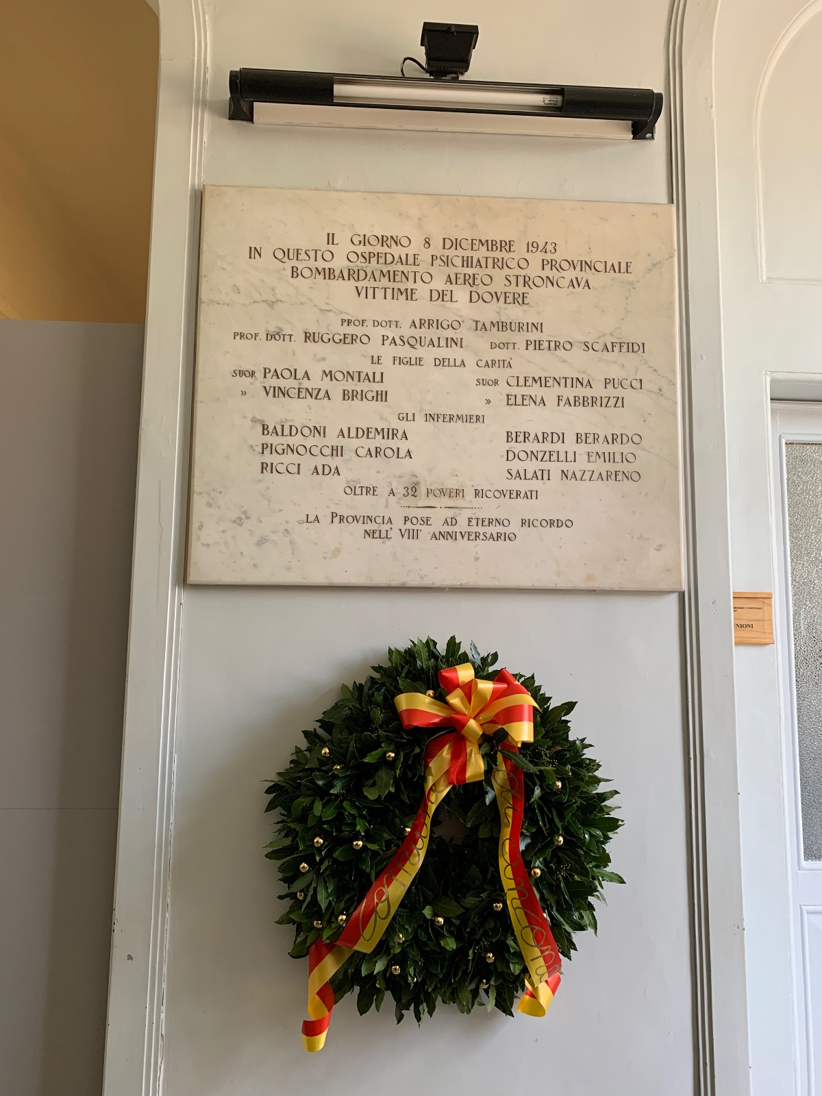 L’ 8 dicembre 1943, poco dopo mezzogiorno, 24 aeroplani iniziarono a sganciare su Ancona bombe dirompenti di grosso calibro che in un unico rapido passaggio investirono tutto il quartiere del Piano. I danni maggiori furono quelli arrecati al Manicomio provinciale, nel cui perimetro caddero 32 bombe, demolendo padiglioni e arrecando danni a quelli rimanenti. Le vittime furono 42 tra suore, infermieri medici e pazienti ricoverati.
