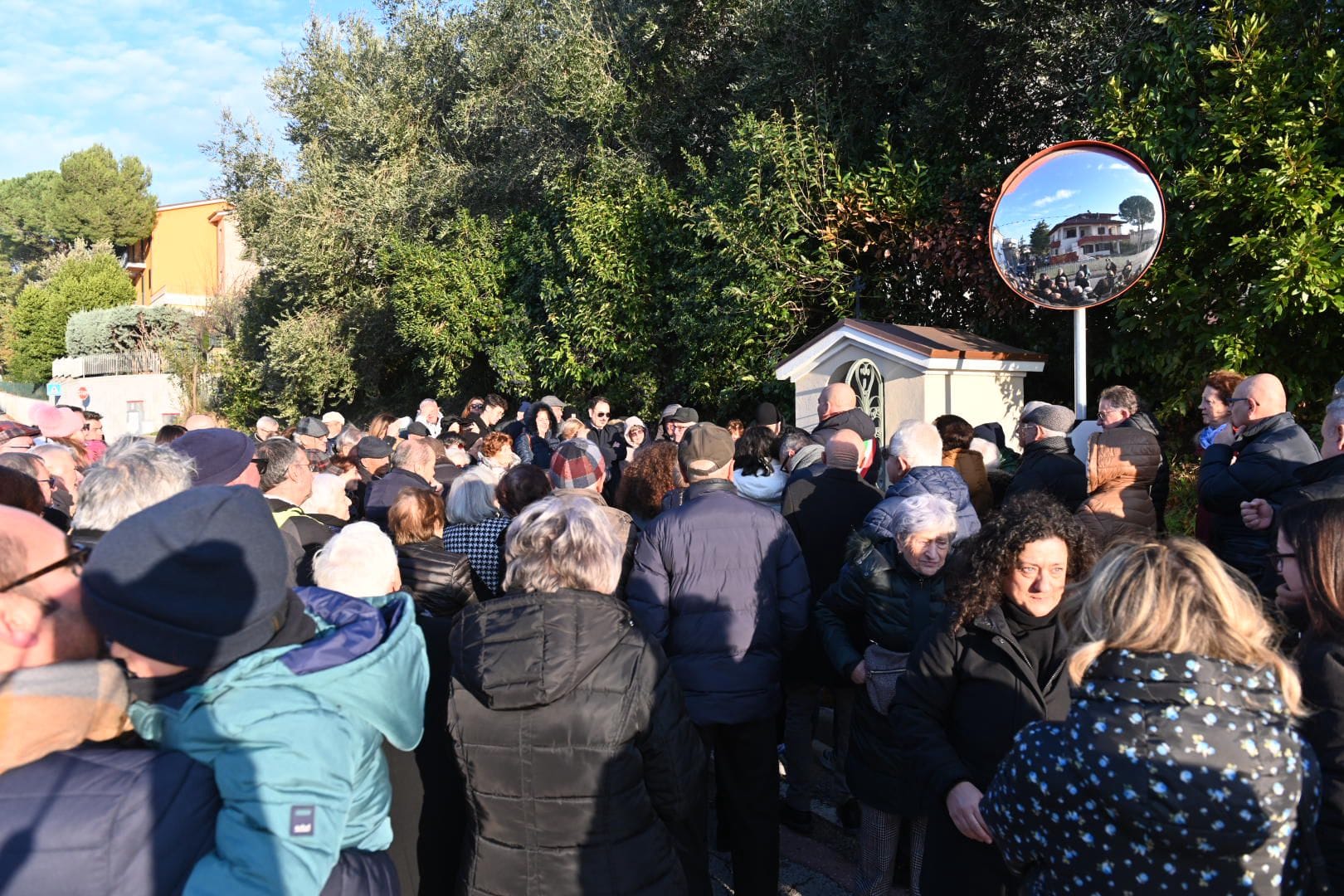 I fedeli accorsi alla cerimonia del taglio del nastro della restaurata edicola sacra dedicata alla Madonna delle Api di Osimo, in via Montefanese