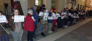PROTESTA – Ieri pomeriggio i manifestanti hanno espresso con cartelli «il proprio sdegno per la vicenda dell’identificazione effettuata a Marco Vizzardelli che prima dello spettacolo alla Scala di Milano aveva gridato “Viva l’Italia antifascista”» spiega la presidente Rosalba Cesini