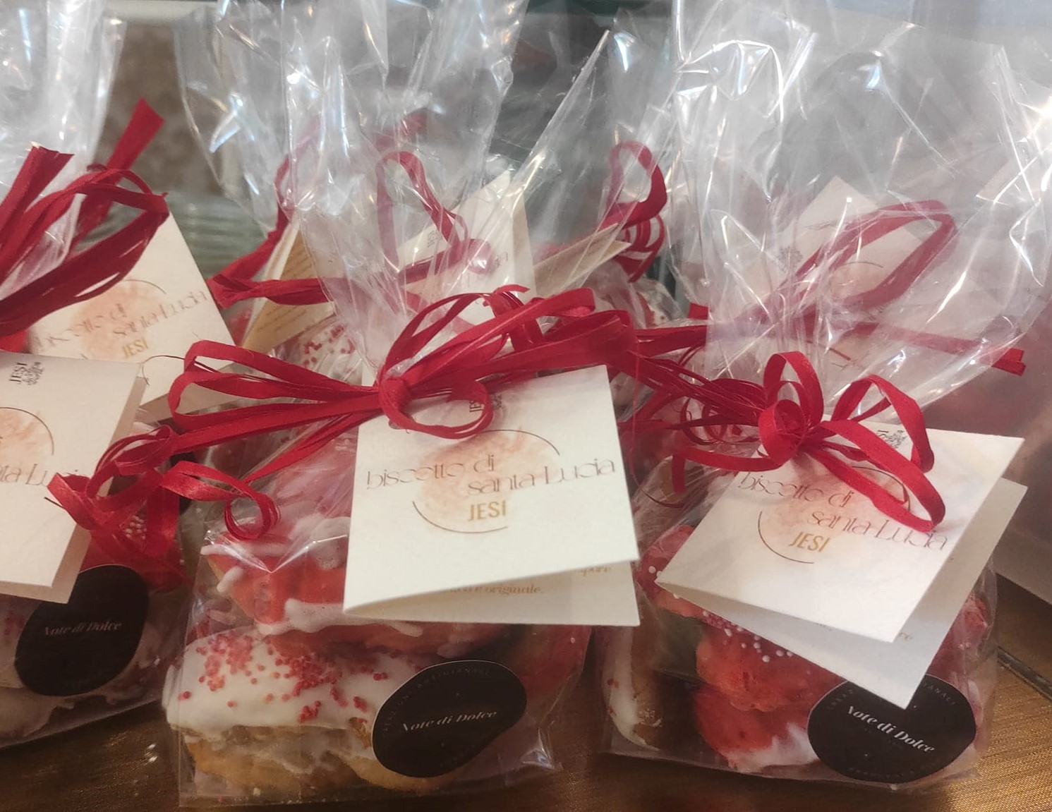 La combinazione di arte, storia e gastronomia rende questo evento un’occasione perfetta per approfondire la conoscenza delle tradizioni locali e per celebrare la figura di Santa Lucia in un modo unico e coinvolgente. I biscotti di Santa Lucia, che diventano così un originale regalo di Natale, si possono acquistare presso la pasticceria Note di Dolce di via Cesare Battisti che ne ha curato la produzione e su donazione volontaria presso la Biblioteca Planettiana, il Teatro Pergolesi ed i Musei di Palazzo Pianetti. Il ricavato delle donazioni sarà devoluto la Fondazione vallesina Aiuta per progetti educativi rivolti ai minori. Sempre in onore di Santa Lucia, per domenica prossima, 17 dicembre, con inizio alle ore 15.30, è organizzato un trekking dalla chiesa di San Giovanni di Dio (più nota come chiesa di Santa Lucia o chiesa dell’Ospedale) alla cattedrale, un percorso a tappe nei luoghi che hanno fatto la storia della confraternita jesina.