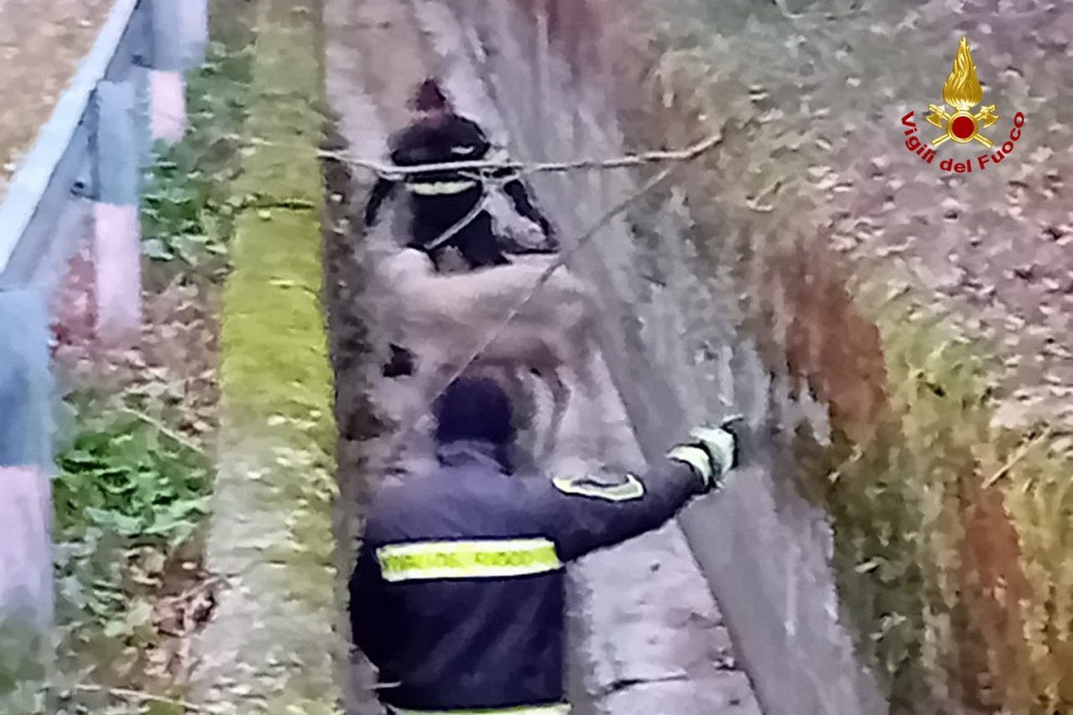 Chiamato il 112, la squadra dei pompieri è giunta sul luogo, riuscendo a recuperare l’animale, in ottime condizioni, con l’ausilio di una imbracatura adeguata.