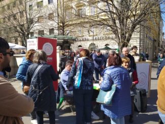 Altra Idea di Città e il banchetto delle firme posto in piazza Roma lo scorso marzo