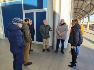 Monica Bordoni (prima adestra) con le delegazione dei negozianti di Cargopier e il direttore del parco commerciale Lorenzo Marchetti