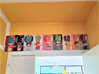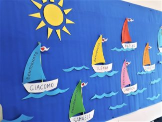 La classe di una scuola e i suoi disegni, segno di creatività e vivacità