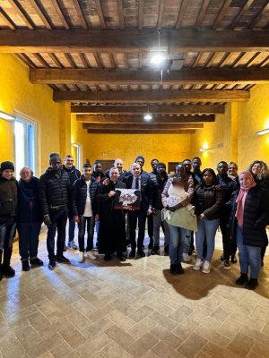 Il questore della Provincia di Ancona, Cesare Capocasa, ha fatto visita agli accolti della comunità Papa Giovanni XXIII e all’Associazione Pace In Terra di Fabriano. A dargli il benvenuto è stato don Aldo Buonaiuto che ha mostrato al questore le attività formative e laboratoriali che condividono gli ospiti di queste realtà associative. Capocasa si è poi fermato a dialogare con i giovani profughi dei centri di accoglienza che frequentano ogni giorno un corso di lingua italiana nella Parrocchia di San Nicolò a Fabriano. Gli operatori presenti hanno regalato al questore e al Commissario di Fabriano Angelo Sebastianelli alcuni oggetti natalizi realizzati nel laboratorio artigianale “Le cose Belle” dalle giovani ragazze vittime di violenza e da altri accolti con varie fragilità.