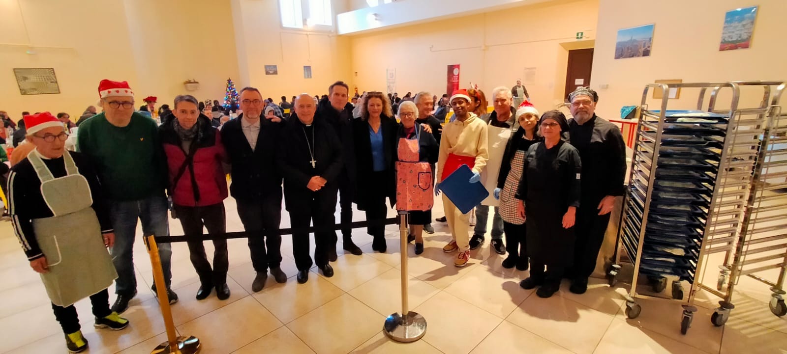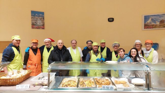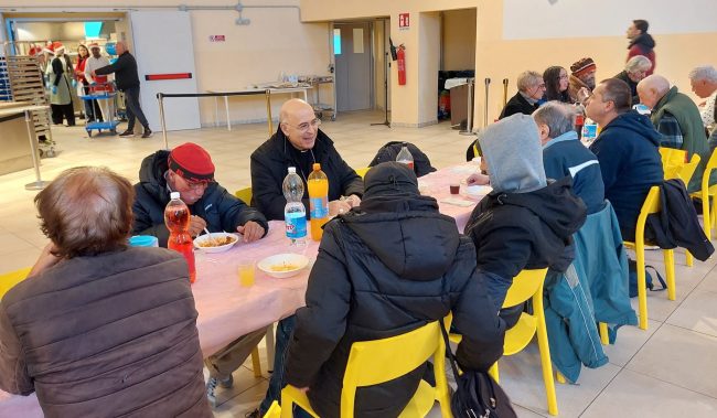 La mensa condivisa per un Natale di Pace. Un gesto di solidarietà che si è rinnovato ieri ad Ancona alla presenza dell’arcivescovo Angelo Spina. La Mensa Caritas Diocesana Santo Stefano, in collaborazione con le suore dell’Opera Padre Guido- Mensa del Povero, ha offerto infatti oltre 200 pasti per il pranzo e la cena. «L’arcivescovo Angelo ha accolto, insieme a tanti volontari e operatori, gli ultimi della nostra città. Quelle persone sole e spesso emarginate che, insieme ad un pasto speciale, hanno potuto godere di una giornata di festa in compagnia e in un clima di amicizia» fanno sapere i volontari sui social postando le foto della tavolata.
