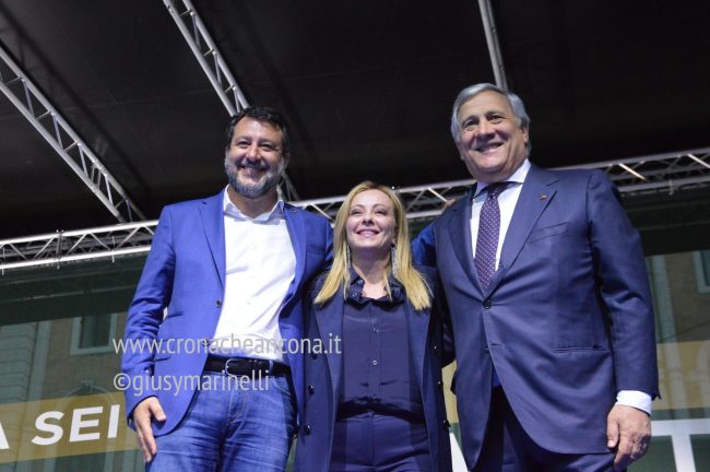 L’8 maggio la presidente del consiglio Giorgia Meloni, assieme ai vicepresidenti e ministri Matteo Salvini e Antonio Tajani tengono in piazza Roma un comizio per sostenere al candidatura a sindaco di Daniele Silvetti.