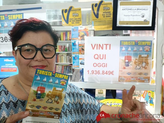 Nella cartolibreria Nuovi Orizzonti di Antonella Bragalli, a Moie di Maiolati, il 28 settembre arriva la dea bendata che porta una vincita di 2 milioni di euro con il Gratta e Vinci della serie ‘New Turista per Sempre’, acquistato con appena 5 euro. Si tratta di una vincita milionaria che consiste nel prendere subito 300mila euro, più 6mila euro al mese per 20 anni e 100mila euro di bonus finale.