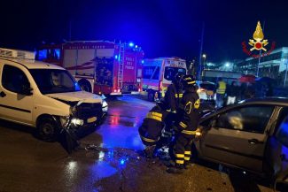 Lo schianto si è verificato all’altezza della rotatoria quando, stando alle prime informazioni, un Doblò sarebbe entrato contromano a causa della pioggia che avrebbe fatto perdere l’aderenza delle ruote sull’asfalto.