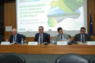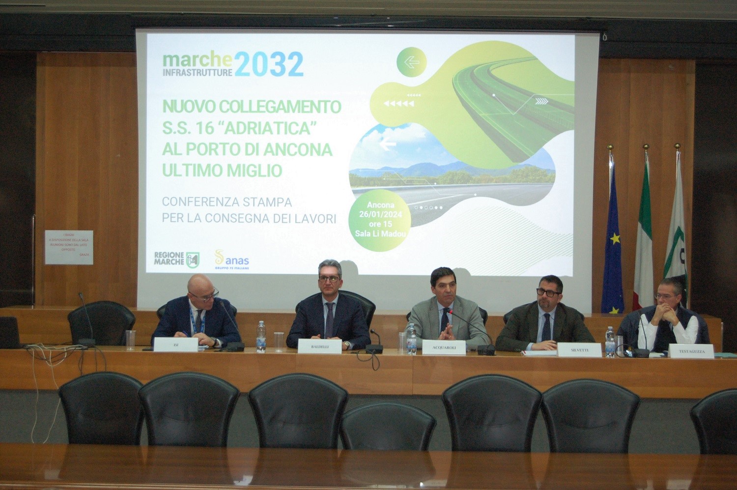 Sono previsti 1080 giorni per portare a termine i lavori da far partire dopo l’estate. Serviranno infatti circa 4 mesi per la progettazione esecutiva e il monitoraggio ambientale. L’opera è considerata di rilevanza strategica nazionale e per questo affidata dal Governo a un commissario straordinario. L’atto di consegna, che costituisce la conclusione delle procedure di appalto e affidamento dei lavori. «La realizzazione di questo nuovo collegamento, prosecuzione del raddoppio della Statale16, offre una prospettiva nuova alla città di Ancona e a tutta la regione. Completa e unisce quelle che sono le nostre grandi infrastrutture rappresentate da porto, interporto e aeroporto – ha detto il presidente Acquaroli – Un investimento strategico anche sul fronte della sostenibilità perché agevola con maggiore fluidità il deflusso delle merci dallo scalo dorico. Un’opera attesa da tanto tempo che finalmente vediamo concretizzata, ridisegnando Ancona e le Marche come una piattaforma importante della vasta area rappresentata dal Corridoio europeo». «Questo intervento – ha affermato l’amministratore Delegato di Anas Aldo Isi – rientra in un piano di investimenti di oltre 4 miliardi di euro che Anas ha attivato nelle Marche, dove gestiamo una rete stradale di oltre 1.500 chilometri. Oltre al collegamento tra il porto di Ancona e la Ss16 stiamo realizzando il raddoppio della variante di Ancona, la variante alla Salaria in provincia di Ascoli Piceno e stiamo avanzando con la progettazione della E78 nel pesarese (mentre il 12 febbraio avverrà la consegna dei lavori per l’apertura della Galleria della Guinza). Oltre 1 miliardo è dedicato invece alla manutenzione e ammodernamento di tutta la rete stradale esistente, un’attività strategica per migliorare il livello di servizio, la sicurezza stradale e la durata delle opere nel tempo».