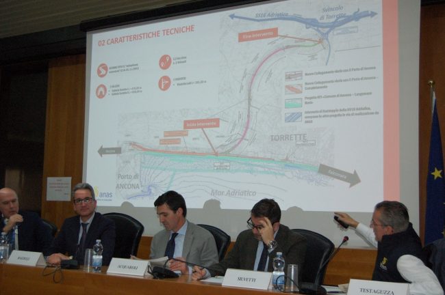 L’avvio del cantiere è previsto dopo l’estate e i lavori avranno una durata di 3 anni (1080 giorni). L’intervento, per un investimento complessivo di 148 milioni di euro, riguarda in particolare la realizzazione di una nuova infrastruttura stradale lunga 2,5 km che collegherà in modo diretto la SS16 con la via Flaminia nei pressi del porto, bypassando il centro abitato di Torrette e l’area ospedaliera, con tempi di percorrenza stimabili in 3 minuti. Il tracciato, con una sezione a due corsie, si innesterà sulla statale Adriatica in corrispondenza dello svincolo di Torrette (in fase di adeguamento nell’ambito dei lavori di raddoppio della variante di Ancona) e sulla via Flaminia con una rotatoria di nuova realizzazione. Comprende un viadotto di 285 metri e due gallerie rispettivamente di 650 metri e 470 metri. L’opera consentirà di eliminare dall’area urbana il traffico in ingresso e uscita dal porto, caratterizzato da una forte componente di mezzi pesanti, che oggi utilizzano esclusivamente la rete viaria comunale condizionando fortemente la mobilità. I lavori saranno eseguiti dal raggruppamento temporaneo di imprese “Donati SpA – Nv Besix SA”, con sede a Roma, mentre la progettazione esecutiva è affidata a un raggruppamento di progettisti guidato dallo studio Prometeoengineering Srl.