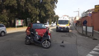 Intorno a mezzogiorno, uno scooter e un’auto si sono scontrate per cause in corso di accertamento da parte delle forze dell’ordine intervenute per effettuare i rilievi di rito.