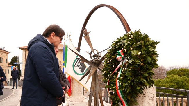 Nel Giorno del Ricordo, stabilito il 10 febbraio, data della firma del trattato di Parigi che ridisegnò nel 1947 il confine orientale dell’Italia, il presidente del Consiglio regionale, Dino Latini, ha deposto una corona di alloro ad Osimo, davanti al monumento “Agli esuli Istriani, Fiumani e Dalmati. Agli esuli del mondo”. Alla cerimonia sul Belvedere di Largo Trieste sono intervenuti anche il presidente Associazione nazionale Venezia Giulia e Dalmazia Marche sud Orazio Zanetti Monterubbianesi e Lauretta Giulioni, sindaco di Filottrano.