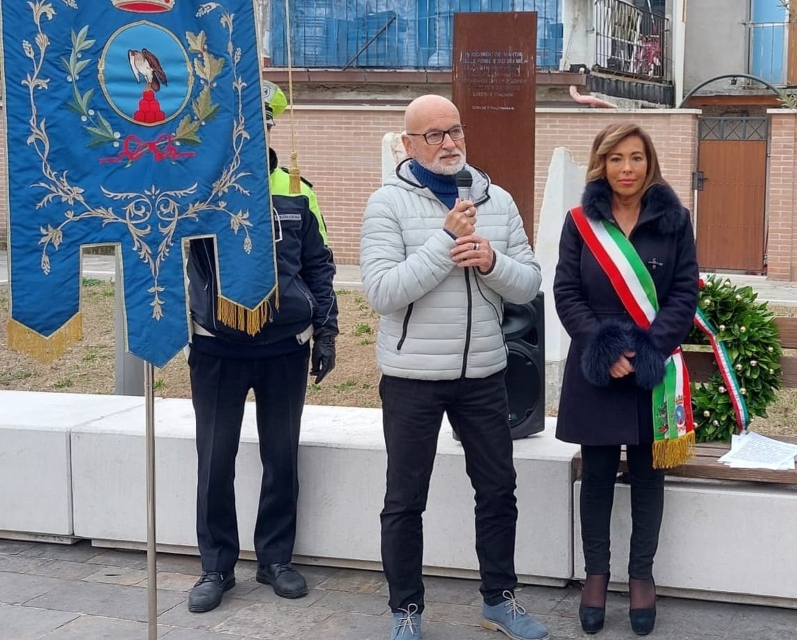 Rappresentanti delle istituzioni, delle forze dell’ordine, delle associazioni, ma anche discendenti degli esuli che si sono stabiliti a Falconara hanno partecipato nella mattinata di oggi, sabato 10 febbraio, alle celebrazioni del Giorno del Ricordo, un momento istituzionale che ha aperto il ciclo di iniziative per ricordare le vittime delle foibe e l’esodo delle popolazioni di Istria, Dalmazia e Fiume. La cerimonia si è svolta in piazza Martiri delle Foibe, davanti al monumento realizzato dall’artista falconarese Guido Armeni, dove il sindaco Stefania Signorini e il dottor Matteo Piccini, esule e autore di scritti storici, hanno preso la parola prima di deporre una corona commemorativa. «Oggi ricordiamo le terribili sofferenze vissute dagli italiani che vivevano dall’altra parte dell’Adriatico subito dopo la seconda guerra mondiale – ha affermato il sindaco nel suo intervento –. La persecuzione contro gli italiani culminò nella tragedia delle Foibe, dove morirono migliaia di innocenti, e portò poi all’esodo di 350 mila italiani, che continuò fino alla fine degli anni Cinquanta».