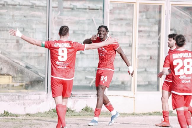 L’esultanza di Saco, Ancona batte Olbia 2-0
