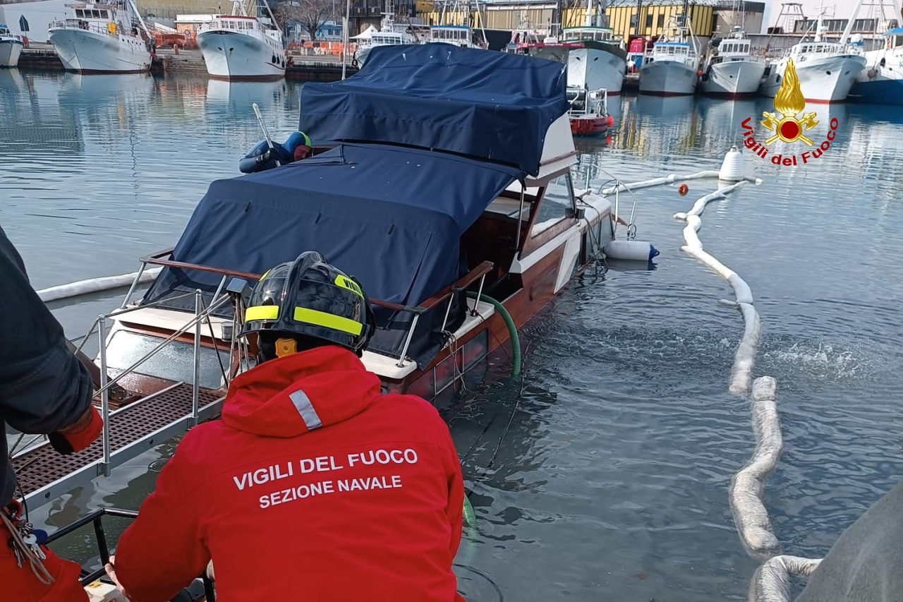 Intervento dei vigili del fuoco per un’imbarcazione semiaffondata al porto del Mandracchio.