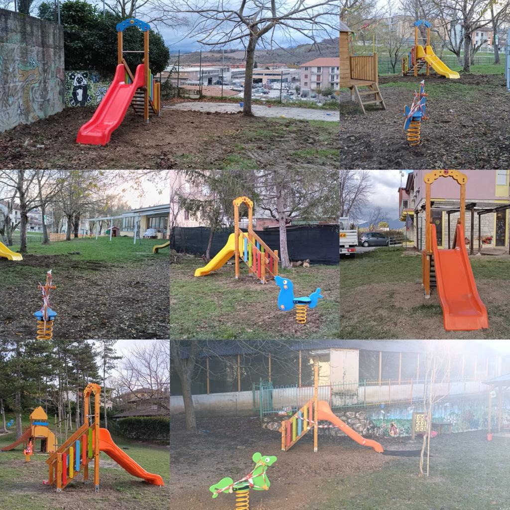 Sono stati posizionati scivoli e giochi a mollapresso in sette scuole materne della città e delle frazioni: scuola Marco Mancini, scuola Aldo Moro, scuola Munari, scuola Collodi, scuola Ciampicali, scuola San Michele, scuola Melano