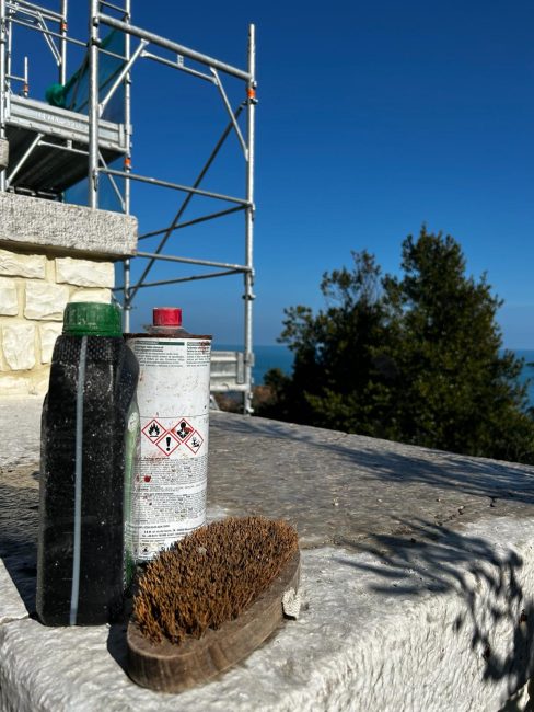 Gli interventi da realizzare invece sono stati suddivisi in tre gruppi, corrispondenti ognuno a una fase di un intervento conservativo: la pulitura, che comprende la rimozione della vegetazione superiore, delle patine, dei graffiti e di tutti quegli elementi che non fanno parte dell’architettura originaria. Il consolidamento che prevede, ad esempio, l’integrazione di parti mancanti e gli interventi sui giunti. La protezione, finalizzata al mantenimento dello stato di pulizia raggiunto e ad allontanare nel tempo la formazione di nuovi fenomeni di degrado.