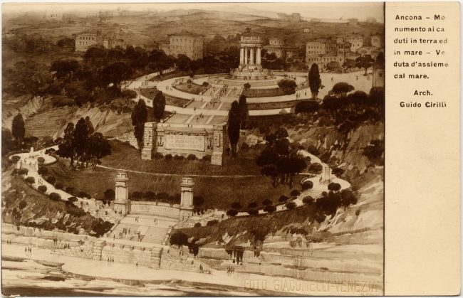 Particolarità: la relazione generale riporta testualmente come «per dimensioni e destinazione d’uso la scalinata a mare, più che un monumento, si configura come una vera opera monumentale, un imponente lavoro di ingegneria, insieme celebrativo e funzionale, che porta la firma dello stesso architetto Guido Cirilli, progettista del vicino Monumento ai Caduti, che segna il punto di partenza della discesa a mare per chi viene dalla città. Di fronte a un tema così peculiare, il progetto di riqualificazione non poteva che partire da una approfondita conoscenza del sito, dell’opera in sé stessa e dei suoi rapporti con il contesto».