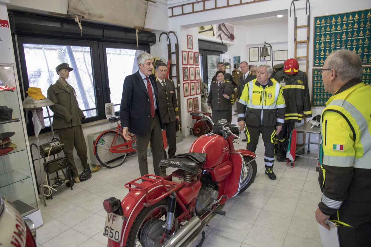 A seguire, la delegazione si è recata presso la sala operativa regionale dove sono illustrate le attività di collegamento tra i vari Comandi della regione e tra questi e il Centro Operativo Nazionale che ha sede al Viminale. Successivamente il prefetto, insieme ai vertici della Direzione e del Comando, ha potuto salutare il personale amministrativo e i funzionari tecnici e quindi visitare il museo storico, gestito dall’associazione nazionale dei vigili del fuoco in congedo, dove vengono conservate le divise e le attrezzature di soccorso utilizzate in passato.