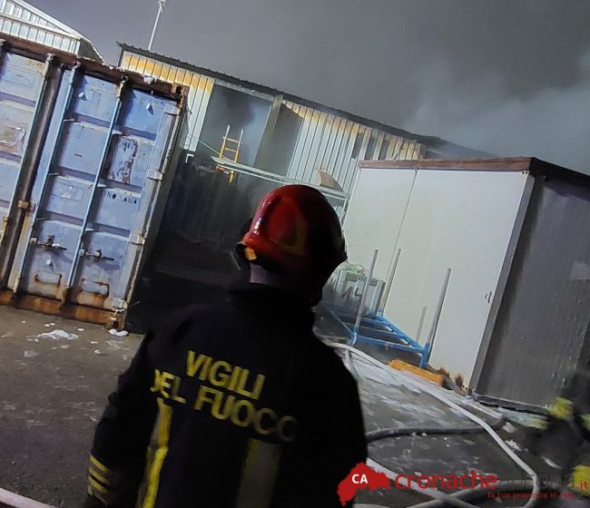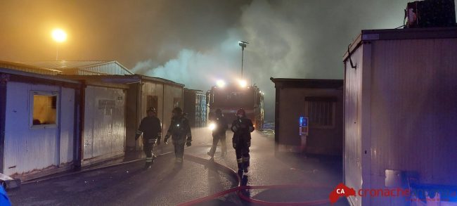 Un incendio è scoppiato nella notte, per cause in corso di accertamento, nella zona portuale Fincantieri di Ancona.