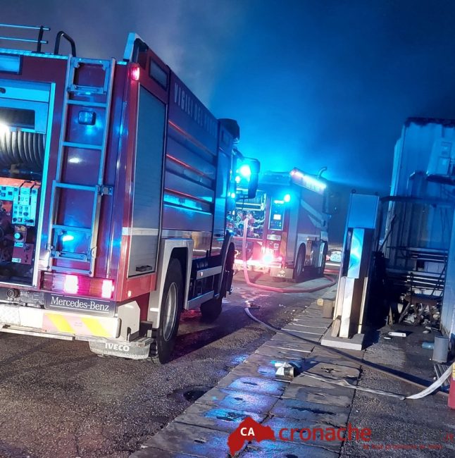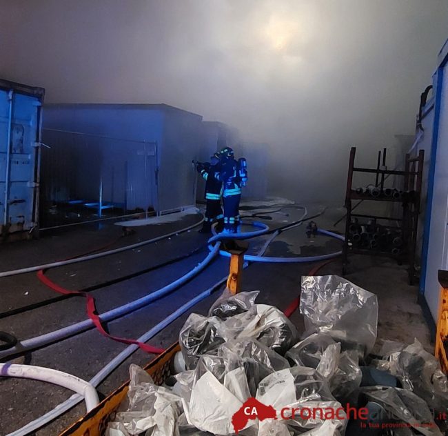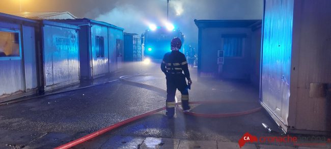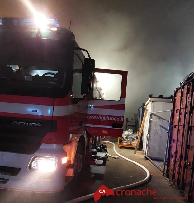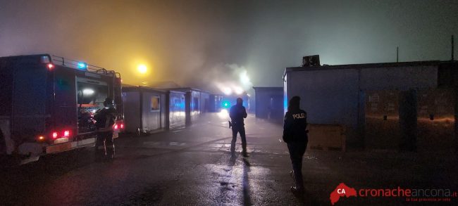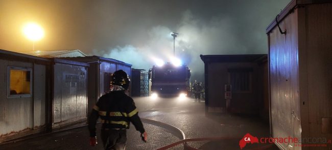 ANCONA - Le fiamme sono divampate nella notte. Sul posto i vigili del fuoco della Centrale e dei distaccamenti Porto, di Osimo e Jesi