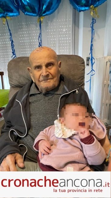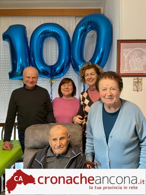 Le Marche hanno un centenario in più. Ieri infatti Luigi Ramazzotti ha compiuto 100 anni, festeggiato nella sua casa di Camerano dalla moglie di 92 anni e dal resto della sua famiglia, compresa la pronipote di appena 2 mesi.