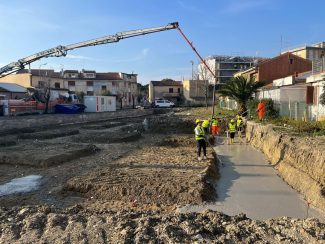 E’ partita la realizzazione del nuovo polo socio-culturale Lorenzini di Villanova, a Falconara. Dopo la demolizione della vecchia scuola elementare, iniziata l’estate scorsa, nella mattinata di oggi 20 febbraio sono partiti i lavori di costruzione del ‘Civic Center’, che sarà un punto di riferimento per tutto il territorio di Falconara. Il sindaco Stefania Signorini proprio oggi ha fatto un sopralluogo a Villanova, dove gli operai sono al lavoro sotto la supervisione dell’ingegner Andrea Pascarella, responsabile del cantiere. L’intervento è stato affidato alla società Intech di Roma.