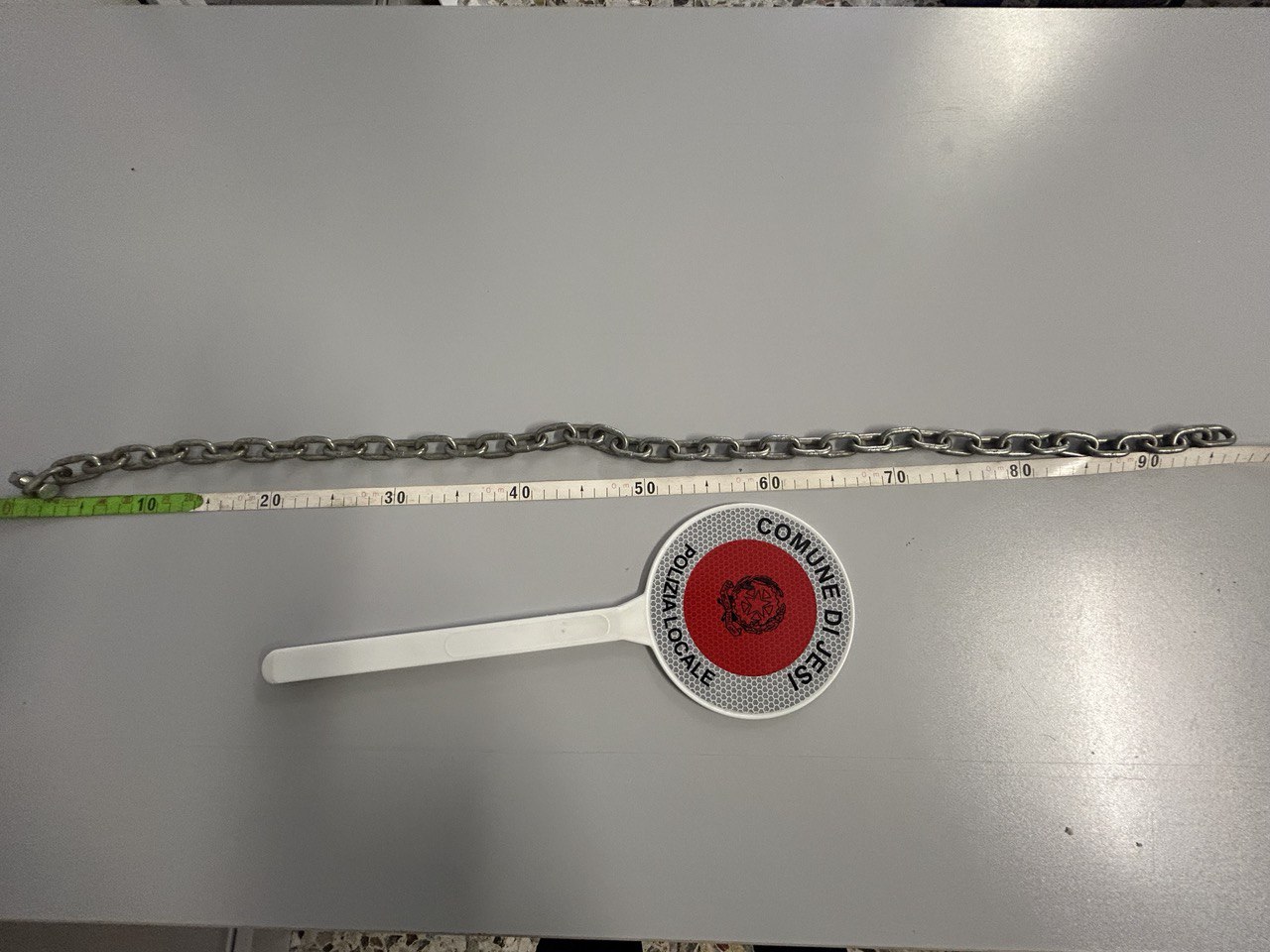 Il fatto si è verificato in via Gallodoro dove una pattuglia della Polizia locale, che era in servizio per il controllo della viabilità, è stata richiamata da alcuni passanti che avevano assistito alla scena. Il pronto intervento degli agenti ha permesso di riportare l’ordine e la calma, evitando ulteriori pericolose conseguenze. Fatti i dovuti accertamenti e ricostruito l’accaduto, gli agenti procedevano ad identificare entrambi i protagonisti del diverbio e conseguentemente a deferire il proprietario dell’auto all’autorità giudiziaria per possesso abusivo dell’oggetto atto ad offendere. La catena è stata ovviamente sequestrata.