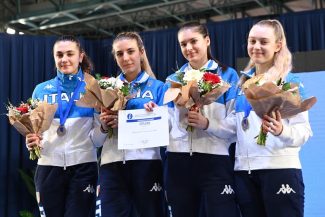Argento italiano, nel Fioretto femminile a squadre anche nella terza giornata dei Campionati Europei giovanili di Napoli 2024. Il quartetto delle azzurrine, composto da Maria Elisa Fattori (del Club Scherma Jesi) Mariavittoria Elvira Berretta, Ludovica Franzoni e Vittoria Riva è stato protagonista di una grandissima prestazione. L’Italia ha esordito negli ottavi di finale con un netto 45-31 inflitto alla Moldavia. Nei quarti, le ragazze guidate dai maestri Fabrizio Villa, Stefano Barrera e Francesca Bortolozzi, dello staff tecnico del CT Stefano Cerioni, hanno reso praticamente senza storia l’assalto contro la Germania, travolta con un impietoso 45-13, successo che è valso il pass per la semifinale contro l’Ucraina. Anche nel penultimo atto le azzurrine hanno dettato legge, imponendosi 44-28 e staccando così il biglietto per la finale, avversaria la Polonia. È stato un match vibrante, in cui l’Italia ha recuperato anche 7 stoccate di svantaggio, cedendo solo sui titoli di coda con il punteggio di 45-43. Ma quella di Berretta (due argenti in due gare), Franzoni, Fattori e Riva resta una gara di assoluto spessore, da vera squadra. Ricordiamo che la jesina Fattori, nelle precedenti gare individuali, si era piazzata all’11°posto assoluto.