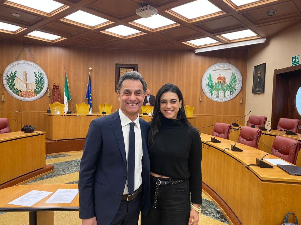 Il sindaco di Porto Recanati Andrea Michelini (al centro) con Matteo Paolillo ed Ester Pantano