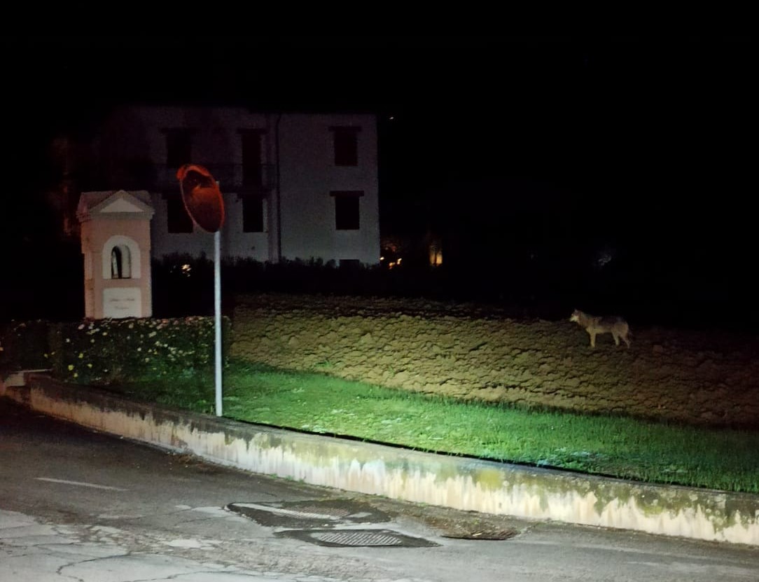 «Non voglio creare eccessivi allarmismi, ma questa sera, verso le 21,20 è stato avvistato questo lupo vicino alla Figuretta sotto il vecchio campo sportivo (zona casa Michelini).