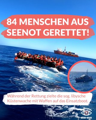 «Un’ora dopo, la nostra nave di salvataggio è riuscita a trovare il gommone sovraffollato e a iniziare l’evacuazione. Durante il salvataggio, due imbarcazioni si sono avvicinate ad alta velocità alla cosiddetta guardia costiera libica. Il capo delle operazioni Julie Schweickert descrive il comportamento “super aggressivo” dei libici. Le milizie a volte puntano persino le armi alla nave da lavoro – comportamenti che non possono essere giustificati. Alla fine – prosegue -, l’equipaggio è riuscito a portare 84 persone a bordo della nave mission Sea-Eye 4 Mochara da RefugeeRescue. Molte persone soffrivano di ipotiroidismo e dovevano essere trattate prima. L’equipe medica intorno al bordo del dottor Gerd Klausen dei medici tedeschi è riuscita a stabilizzare tutti i soccorsi.»