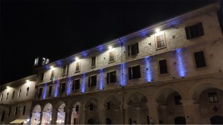Sassoferrato illuminata di blu e pronta ad accogliere i ciclisti della Tirreno-Adriatico