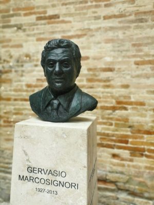 Il busto in bronzo di Gervasio Marcosignori, figlio illustre di Castelfidardo, è stato scoperto sabato in piazza Leopardi. L’oscar mondiale della fisarmonica (aveva ricevuto il premio nel 1959) è scomparso nel 2013 all’età di 85 anni. «Grandissimo artista, compositore e visionario promotore dell’evoluzione della fisarmonica. Ha fatto conoscere la fisarmonica in tutto il mondo e ha contribuito a perfezionare questo meraviglioso strumento collaborando con tutti i più importanti artigiani della nostra città.- commenta il sindaco della città della fisarmonica, Roberto Aascani – La figura di Gervasio Marcosignori sarà simbolo ed esempio per sempre tramandato alle nuove generazioni. Il busto in Piazza Leopardi lo raffigura in maniera magistrale e diventa icona e orgoglio della nostra città».