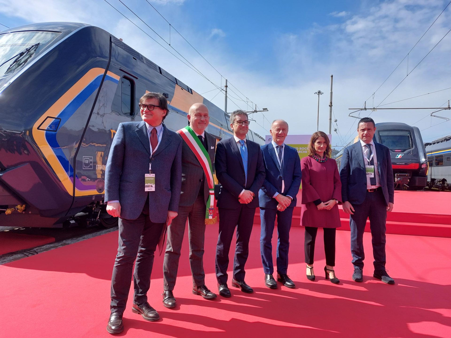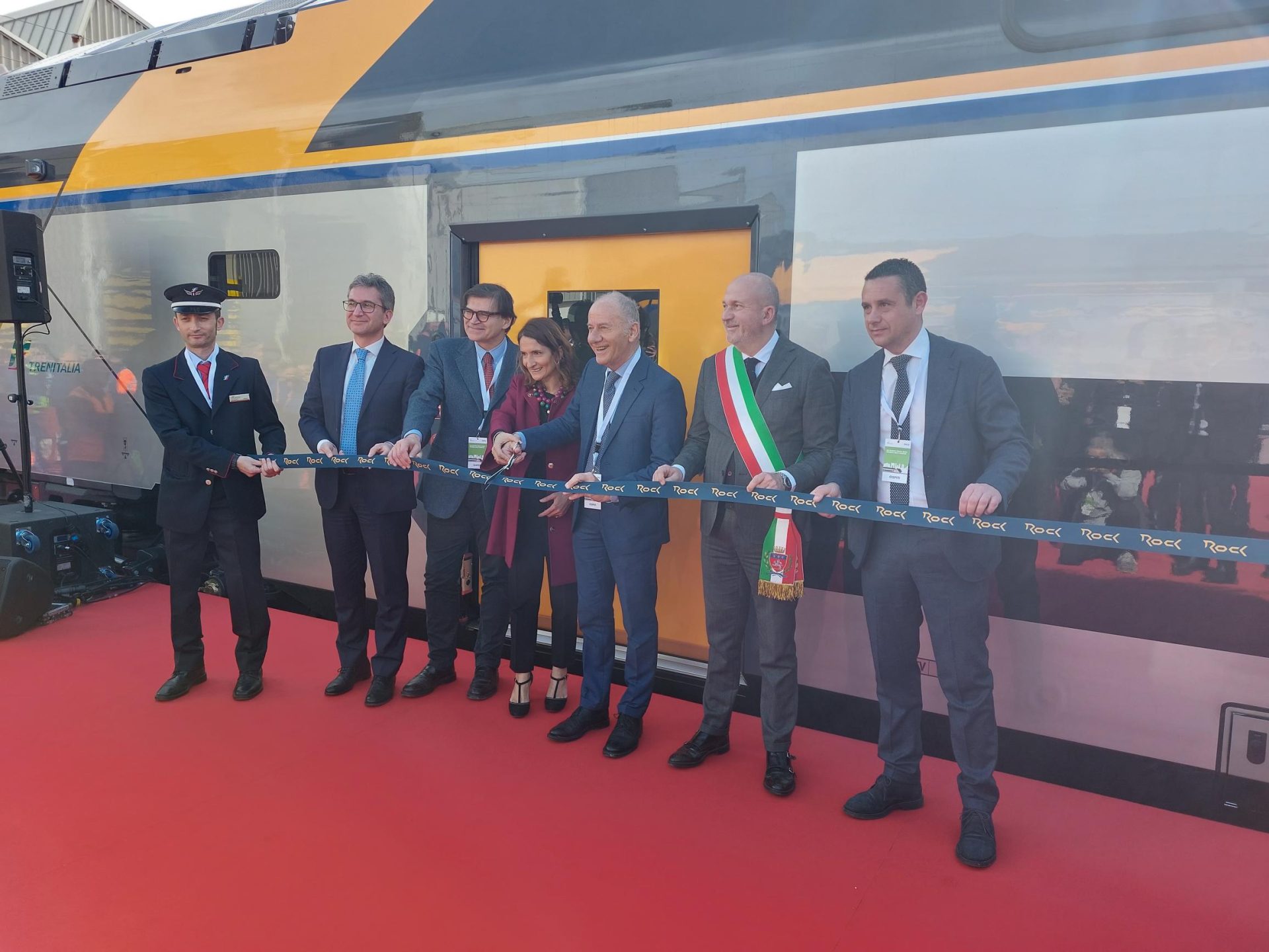 Presentato oggi alle Officine Trenitalia di Ancona il nuovo treno Rock, il settimo in circolazione sui binari delle Marche