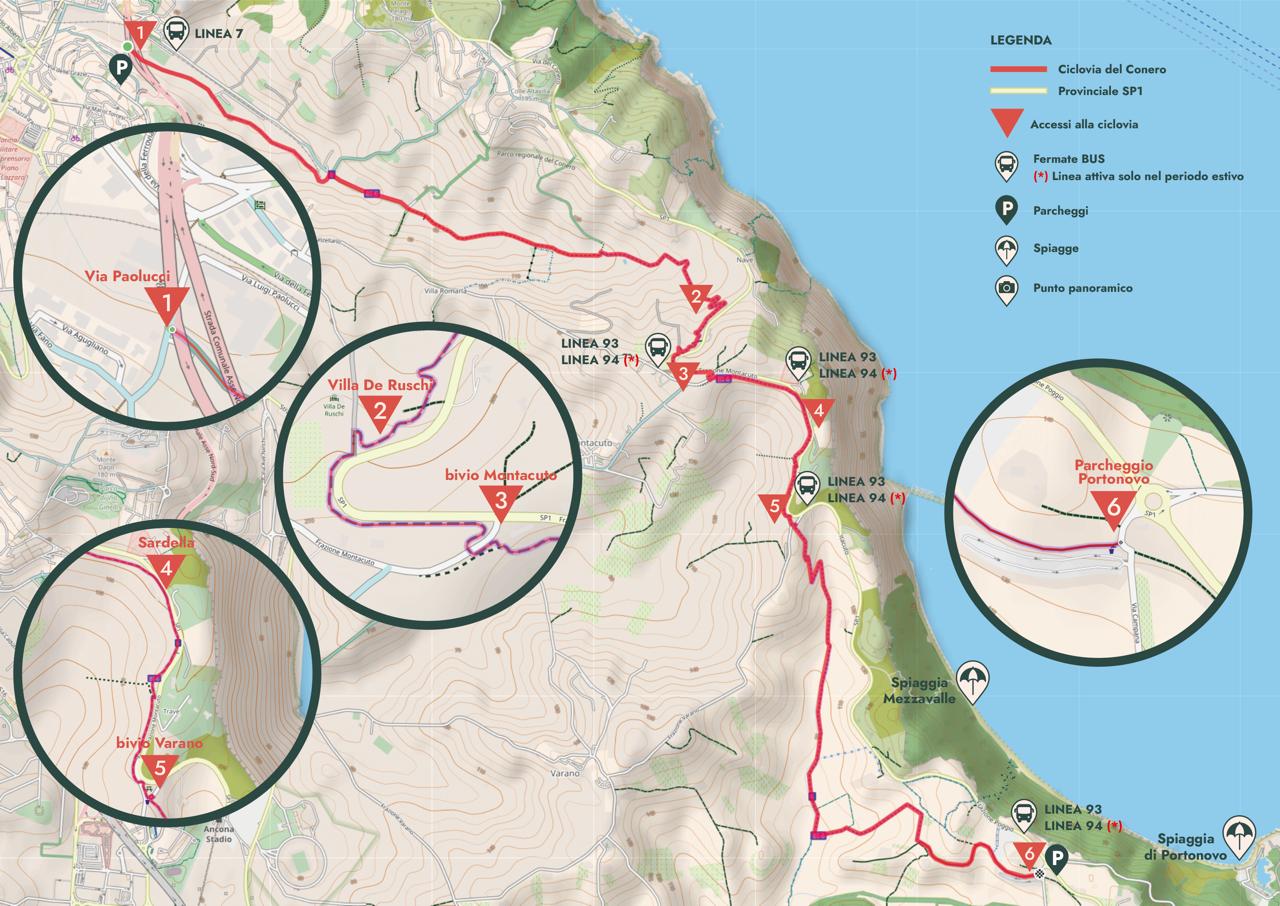 «Undici chilometri nel verde, lungo un tracciato variegato che corre al margine di campi coltivati che cambiano colore con le stagioni, tra alberi e ricca vegetazione, case coloniche e fattorie, con scorci paesistici inediti e con il mare sullo sfondo.- ricorda una nota del comune di Ancona – Un percorso nella natura accessibile sia a piedi sia in bicicletta, per gli sportivi e anche per le famiglie (meglio se con bici elettrica), ciascuno con il proprio ritmo e nel rispetto di quello altrui».