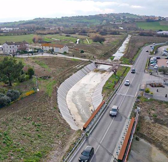 «L’intervento di cui si tratta rientra in un ben più ampio progetto generale della Regione Marche – commenta l’ingegner Stefano Stefoni, direzione Protezione Civile e Sicurezza del Territorio –; nel corso degli ultimi anni molte sono state, e saranno, le risorse economiche messe a disposizione per gli interventi di mitigazione del rischio idrogeologico, provenienti da diversi canali di finanziamento. Obiettivo con la Regione Marche, è di realizzare, oltre alle attività ordinarie, tutte le opere necessarie nelle aree già colpite da eventi alluvionali importanti, e fare sì che sia garantito il deflusso senza danni delle piene causate da eventi piovosi con una probabilità di verificarsi superiore ai 200 anni, come prevedono le norme. Per fare ciò sono state dirottare tutte le risorse necessaria nei bacini dell’Aspio (Osimo e Castelfidardo), dell’Esino (Castelferretti e Falconara) del Misa (Bettolelle e Senigallia) e più recentemente del Bagnolo (Morrovalle) e del Marganetto-Aspio (Ancona). Si tratta di risorse ingenti – diverse decine di milioni di euro – che consentiranno ai Sindaci, una volta ultimate le opere e in particolare di nei Comuni di Osimo e Castelfidardo, di avviare una richiesta di deperimetrazione delle aree esondabili dal PAI. Significa aver restituito al territorio ed alla popolazione quel grado di sicurezza tale da consentire all’amministrazione locale di organizzare come meglio crede lo sviluppo del proprio territorio, senza vincoli di carattere idrogeologico. L’obiettivo è sfidante e raramente si ha notizia di deperimetrazioni, dipendenti dalle Autorità di Bacino e non dalla Regione; tuttavia nelle Marche abbiamo già avuto un precedente a Castelsant’Angelo sul Nera ed è in corso un secondo procedimento a Pioraco, successivamente alla realizzazione di una serie di altrettanto importanti interventi di mitigazione del rischio idrogeologico».