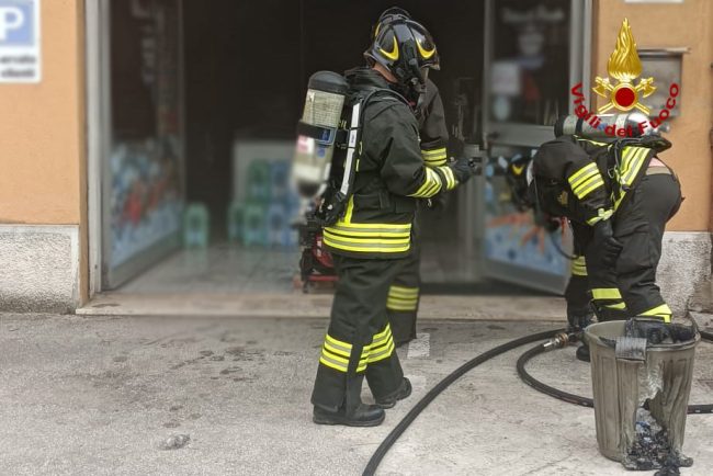 E’ accaduto intorno alle 15 quando il locale, in via Dante, era ancora chiuso. Allertato il 112, sul posto sono giunti i vigili del fuoco.