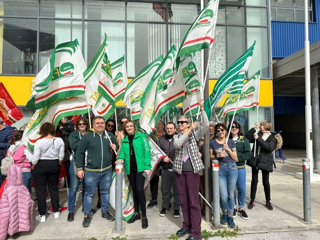 A distanza di 51 mesi dalla sottoscrizione dell’ultimo contratto collettivo nazionale di lavoro di settore, scaduto e non ancora rinnovato, questa mattina i lavoratori dipendenti dalle imprese associate a Federdistribuzione hanno partecipato ai diversi sit-in di protesta proclamati anche nella nostra regione dalle ore 10 alle ore 12 dalle organizzazioni sindacali di categoria, Filcams Cgil, Fisascat Cisl e Uiltucs. Buona l’adesione al primo sciopero, all’interno di un pacchetto di sedici ore, registrata davanti al negozio di Ikea Camerano come anche negli altri punti vendita delle diverse province marchigiane, all’ Obi, Famila e A&O di Pesaro, all’Acqua & Sapone Civitanova Marche e San Benedetto del Tronto e all’Oasi Fermo. Alla base della mobilitazione scattata dopo la rottura al tavolo di trattativa di mercoledì scorso per il rinnovo del Ccnl della Distribuzione Moderna Organizzata, i confederali indicano «l’irresponsabilità di Federdistribuzione» nel presentare «svariate richieste finalizzate a sabotare diritti e garanzie attualmente contenute con Contratto collettivo nazionale di lavoro e che le lavoratrici ed i lavoratori della distribuzione commerciale hanno raggiunto a costo di sacrifici e di lotte nel corso degli ultimi decenni». In assenza del rinnovo contrattuale, secondo i sindacati, i lavoratori avrebbero quasi perso nello stipendio un quinto del loro potere d’acquisto.