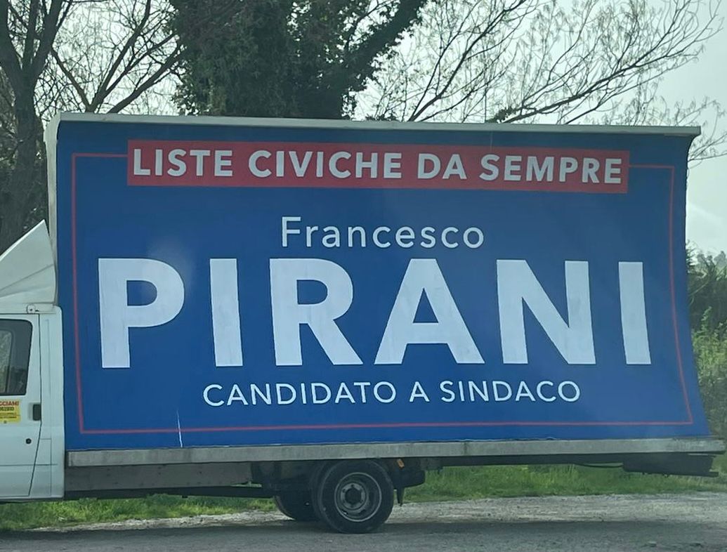 Dopo i manifesti elettorali di Michela Glorio, in città è stata notato quello su vela itinerante realizzato dalle Liste civiche per promuovere la candidatura di Francesco Pirani