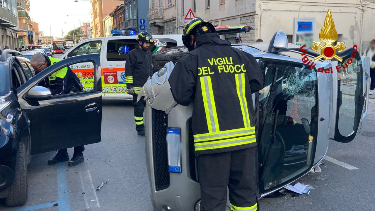 Per cause in corso di accertamento da parte della polizia locale, un’auto si è ribaltata dopo averne urtata un’altra.