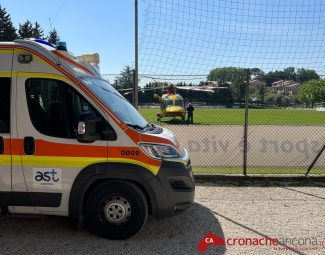 Qui, dopo le prime e immediate cure da parte del personale medico e sanitario, è stato richiesto anche l’intervento dell’eliambulanza partita dalla postazione di Torrette e atterrata al campo sportivo nel giro di una manciata di minuti.