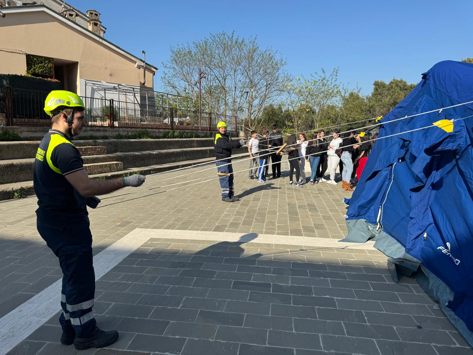 Un percorso virtuoso di sensibilizzazione, non solo teorico, rivolto a tutta la cittadinanza per far conoscere le misure di protezione civile da adottare in caso di emergenza che , per l’occasione, hanno trasformato l’Arena IV Luglio in una vera e propria palestra operativa coloratasi sin dalle prime ore del mattino con le impeccabili ed infaticabili divise gialloblu dei volontari impegnati, al cospetto di oltre 200 attoniti studenti , ad allestire un’area di emergenza e soccorso per calamità.