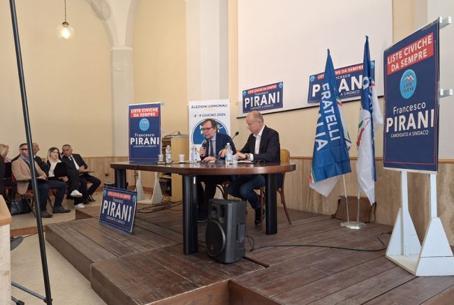 «La vittoria alle urne porterebbe una convergenza tra le istituzioni comunali, regionali e nazionali mai vista prima d’ora, con una ricaduta positiva in termini di capacità di dialogo e di gestione delle risorse economiche. Non possiamo perdere questa occasione» ha rimarcato durante il suo intervento. Un progetto politico, il suo, che parte inevitabilmente dall’esperienza di imprenditore: «Il lavoro e il contenimento delle disuguaglianze saranno i principali punti del programma. La classe media ha subito i danni maggiori dall’ultima crisi economica e necessita di investimenti in istruzione e formazione per garantire un adeguato ricambio della classe lavoratrice. La povertà, come ha detto qualcuno, non si abolisce per decreto e faremo di tutto per garantire ai cittadini la possibilità di non perdere la fiducia nel proprio territorio». Pirani ha, poi, spiegato che in veste di primo cittadino delegherà molto. «Voglio fare con l’aiuto di tutti quanti voi, ragionare come uomo solo e una donna sola il comando e non va bene» ha dichiarato ammettendo anche che le idee vanno calate in forma già inventate. «Non bisogna avere paura di adottare modelli già esistenti e di successo, basta adeguarli. Il combattere – ha detto riferendosi all’unità di intenti contro i personalismi – non porta da nessuna parte. Non possiamo permetterci di perdere una guerra per lotte intestine, per protagonisti, per paura di fare un passo indietro. Chi fa un passo indietro, chi farà un passo indietro e chi ha fatto un passo indietro è chi non ha voluto collaborare con le persone che aveva accanto. Bisogna rimettere al centro dell’azione politica e amministrativa la città e i cittadini. Si deve partire da lì: dai cittadini ».