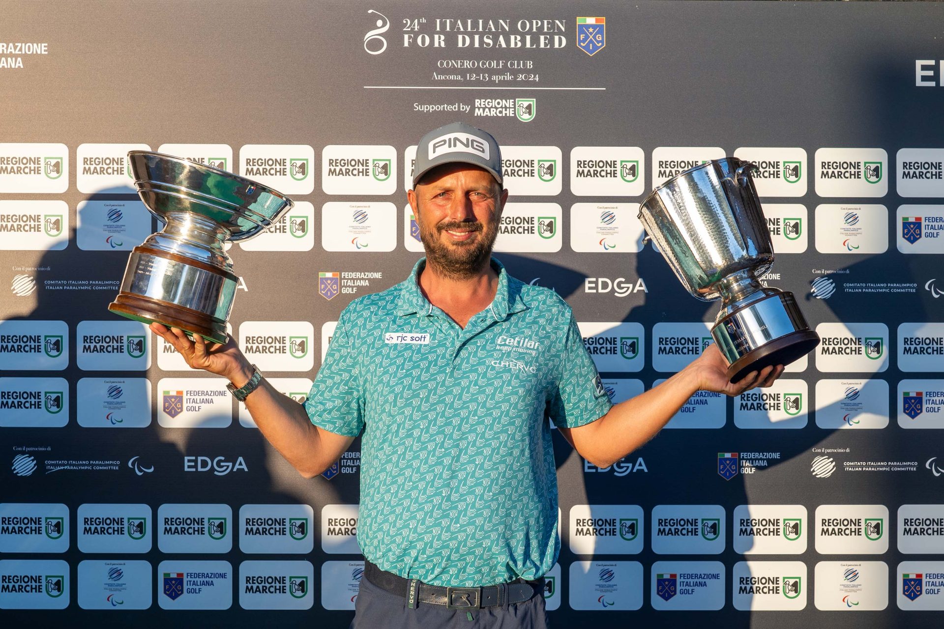 Al Conero Golf Club ha vinto per la quarta volta il torneo, firmando anche il suo quarto successo nel Campionato Italiano. Nella strokeplay pareggiata successo del tedesco Reinhard Berer e nella stableford titolo a Mario Gazzetta, Tommaso Perrino ha vinto con 143 (70 73, +1) colpi l’Open d’Italia Disabili supported by Regione Marche, torneo internazionale dell’European Disabled Golf Association disputato al Conero Golf Club (par 71) di Sirolo. Un trionfo per il livornese che ha fatto l’en plein conquistando anche il Campionato Italiano. Nel round conclusivo dell’evento, giunto alla 24ª edizione, il vincitore, leader dopo un giro, ha contenuto con un 73 (+2) il ritorno del camerunense Issa A Amang Nlareb, che ha provato a rimontare dalla terza piazza, ma che si è dovuto accontentare della seconda con 145 (73 72, +3). In terza posizione con 146 (+4) Nicola Maestroni, in quarta con 147 (+5) il tedesco René Schwenk e in ottava con 165 (+23) Vittorio Cascino e Davide Palestro.