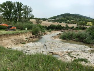 Ruspe in azione nell’alveo dell’Esino, nel tratto che attraverso il territorio comunale di Cerreto d’Esi