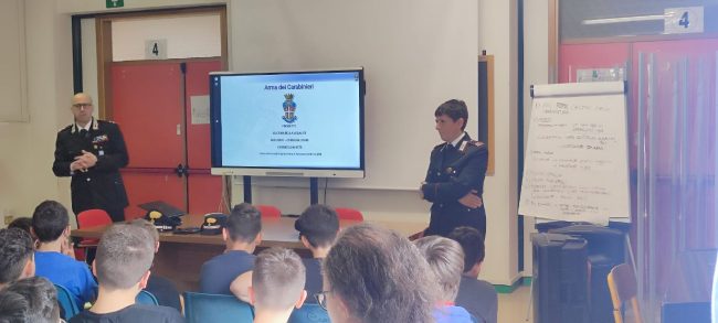 All’incontro era presente il tenente Giuseppe Esposito, comandante della locale Tenenza che, con il maresciallo maggiore Romina Baschenis, si è confrontato con una platea di 140 studenti di sei classi.