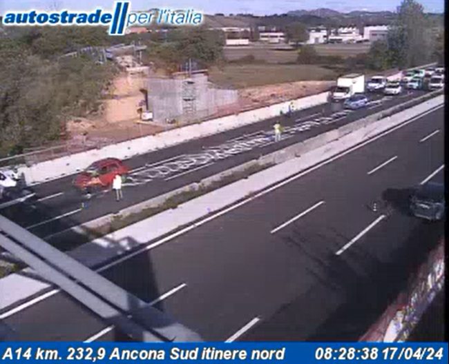 Coda di 4 chilometri in A14, tra Ancona Nord e Loreto, a seguito di un incidente al km. 225 direzione Taranto, avvenuto poco prima delle 8.